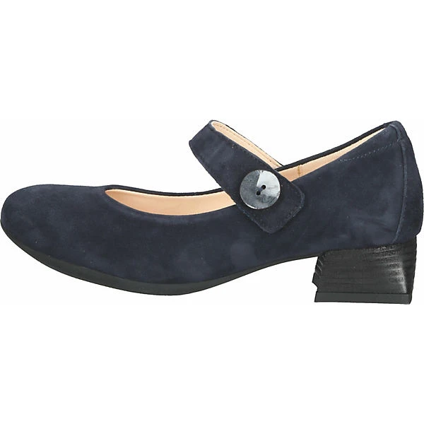 Think! präsentiert einen eleganten Pumps mit dem modischen, eckigen Absatz und aus super weichem Veloursleder gefertigt. Dieser Schuh ist besonders atmungsaktiv und bietet so ein optimales Fußklima. Der leichte Absatz sorgt für einen schönen Gang und ist trotzdem bequem. Der Knopf am Riemen besticht durch seine Holzoptik. Durch den praktischen Klettverschluss kann der Riemen individuell angepasst werden. Das sorgt für eine optimale Passform.